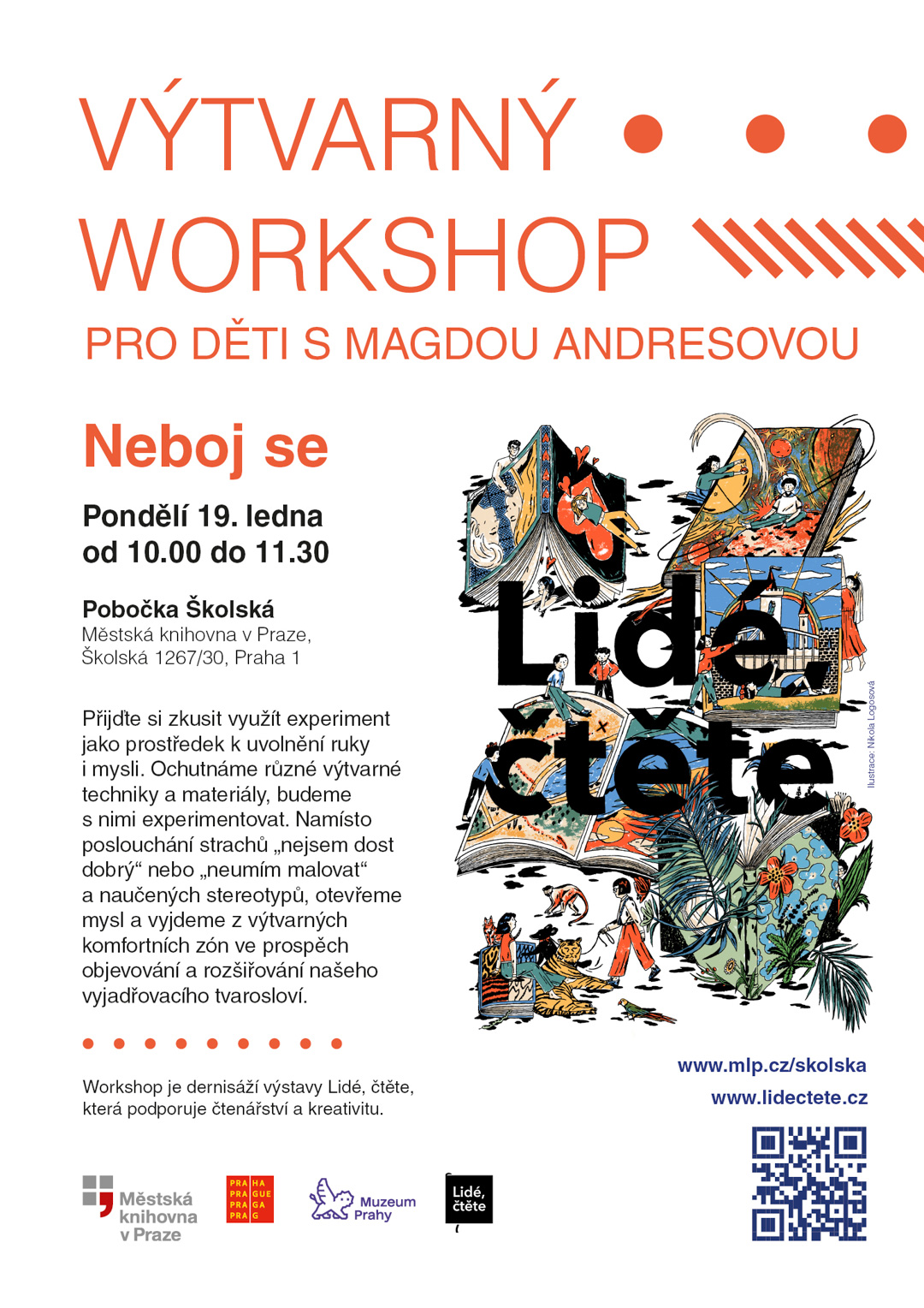 Výstava propojuje svět knih a výtvarného umění. Povzbuzuje děti ke čtení, ale také rodiče, aby si s dětmi četli navzájem a s radostí. Knihovna si pro ně připravila tvůrčí doprovodný program: předvánoční i povánoční výrobu záložek (první tvůrčí dílna proběhne již 2. prosince od 14 do 17 hodin, druhá pak ve stejném čase 6. ledna), výtvarný workshop pro děti s umělkyní a jednou z protagonistek projektu Magdou Andresovou, který 19. ledna výstavu slavnostně ukončí.