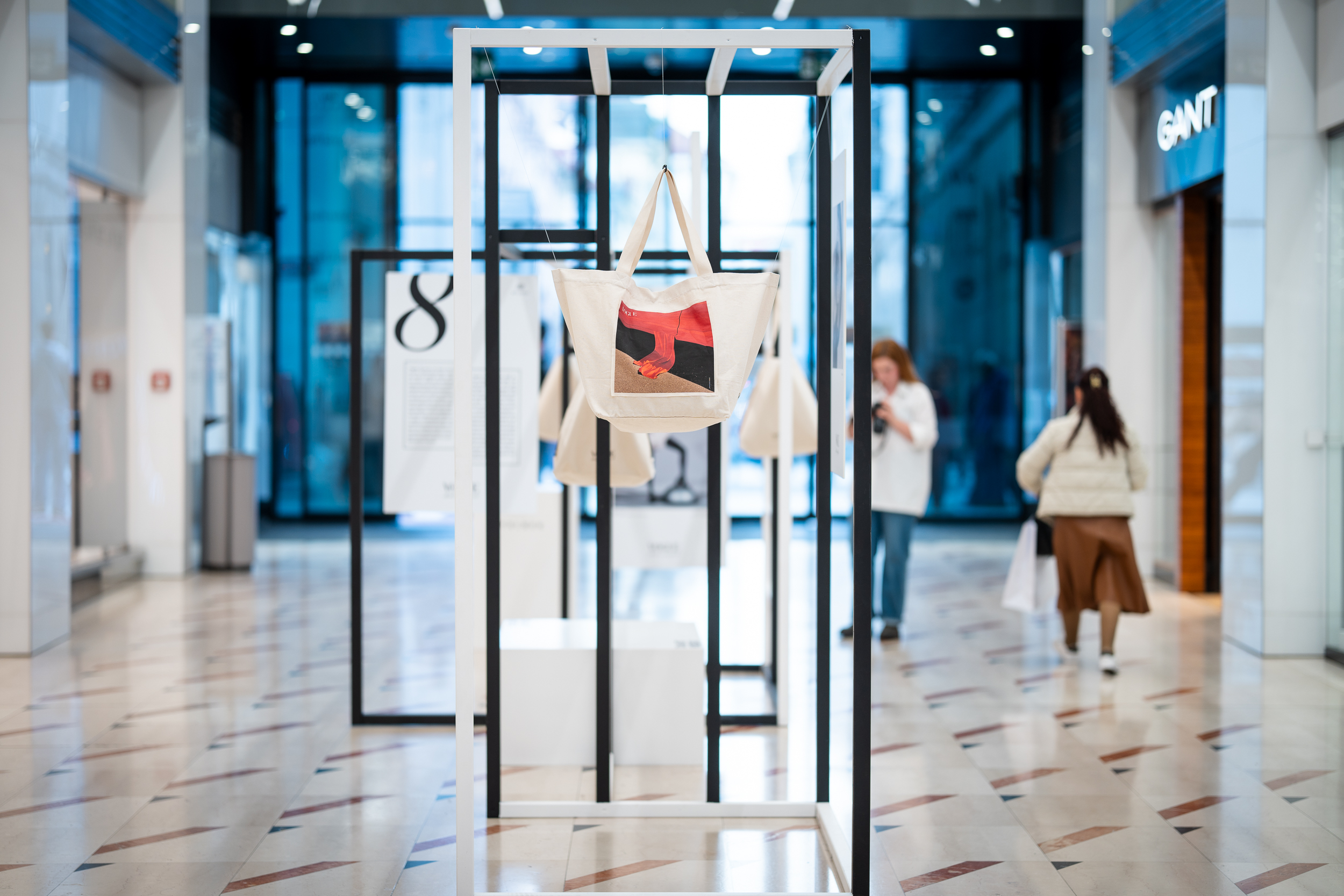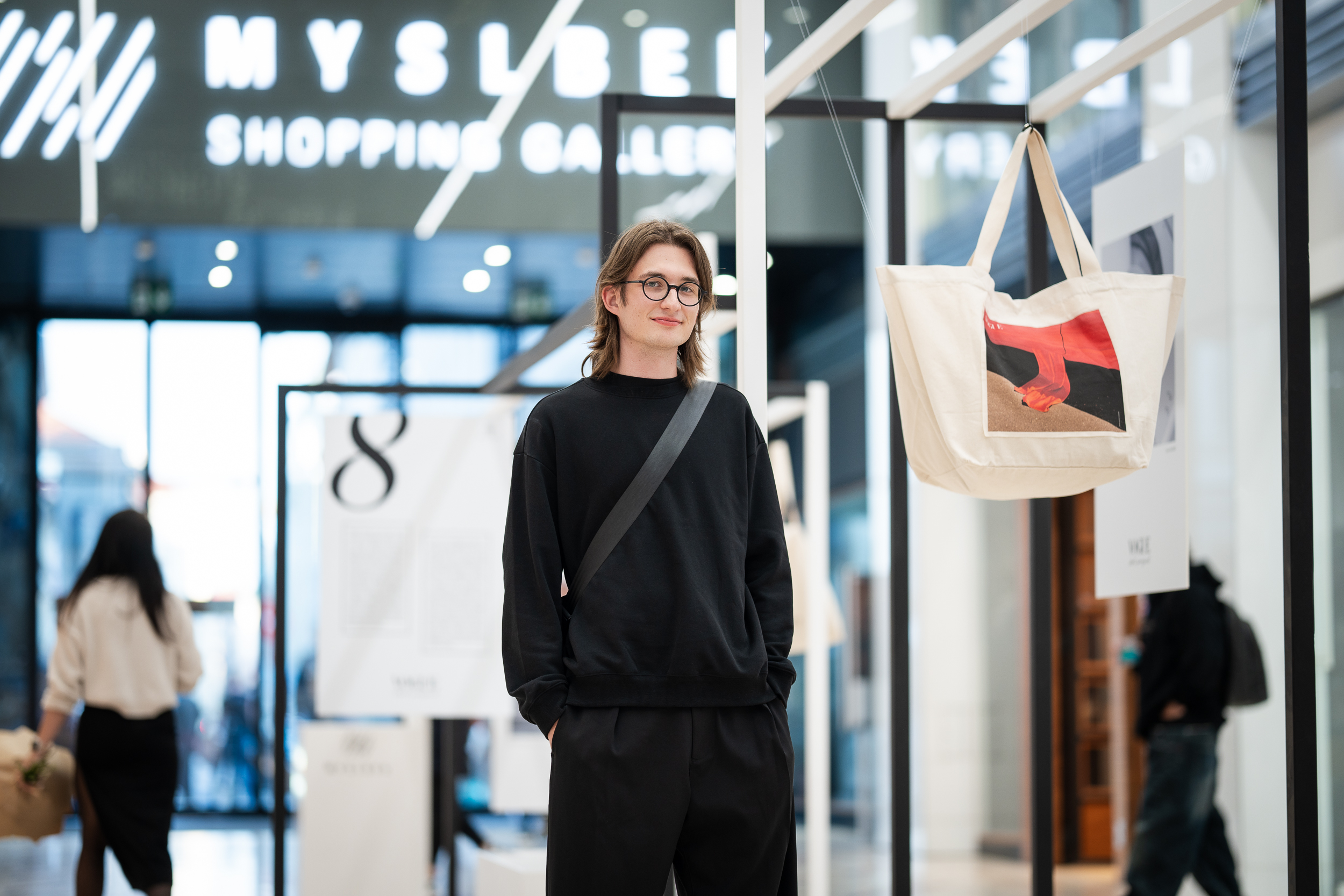 Autorem fotografie na tašce Myslbeku je Eda Babák, který se rozhodl vizuálně propojit historický kontext místa, na kterém nákupní galerie stojí s moderním vizuálním jazykem: „V této fotografii jsem chtěl zachytit dialog mezi historií a přítomností. Typickou drapérii Myslbekových soch jsem zdeformoval a propojil s křivkami skleněné instalace Vortex od Maxima Velčovského. Pracoval jsem s distorzí jako principem. Látka se stáčí, splývá a víří, jako by byla vtažena do energetického pole. Tenhle vír je pro mě metaforou samotné pasáže, kde se denně potkává proudící energie moderní Prahy s její historickou pamětí.“