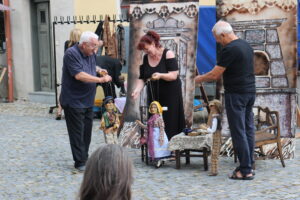 Přestože těsně před přestavením sprchlo, počasí nakonec loutkám, loutkářům a také divákům přálo a v malebném zákoutí židovského ghetta na nábřeží Jihlavky se všichni – malí i velcí – dobře bavili. Loutkáře přišel pochválit i kolega, který na stejném místě vystoupil následující den.